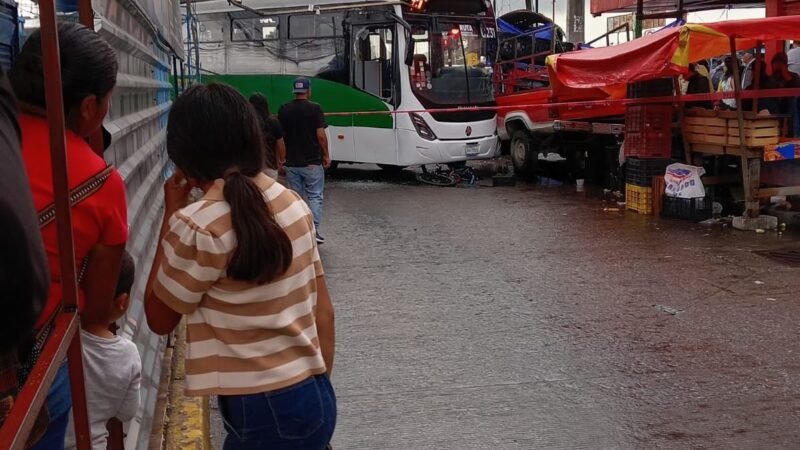 El percance ocurrió alrededor de las 17:30 horas en la intersección del bulevar Carmen Serdán y el bulevar Norte, con dirección al mercado Hidalgo. De acuerdo con los primeros reportes, el conductor de la unidad 231 habría cruzado con la luz roja del semáforo. Al percatarse de que varias personas atravesaban la vialidad, intentó maniobrar para evitar atropellarlas, pero perdió el control y terminó impactando contra una camioneta de batea roja y un puesto de jugos y cemitas.