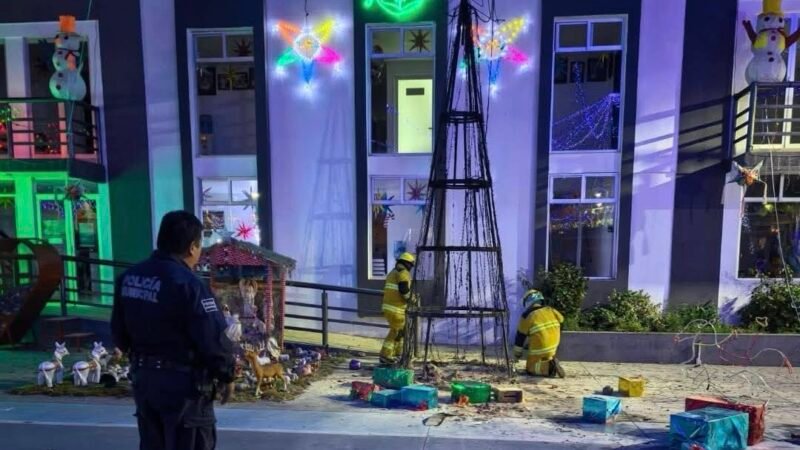 El incidente ocurrió poco después de las 22:00 horas, cuando se recibió el aviso de un incendio en la zona. Al llegar, los elementos de bomberos confirmaron que el fuego se había originado en el árbol navideño, aparentemente por un corto circuito en las luces.