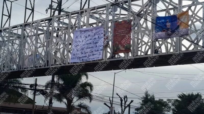 Una manta con un mensaje de amenaza fue colocada durante la madrugada de este jueves en el puente principal de San Salvador Chachapa, junta auxiliar del municipio de Amozoc, sobre la carretera federal Puebla–Tehuacán.