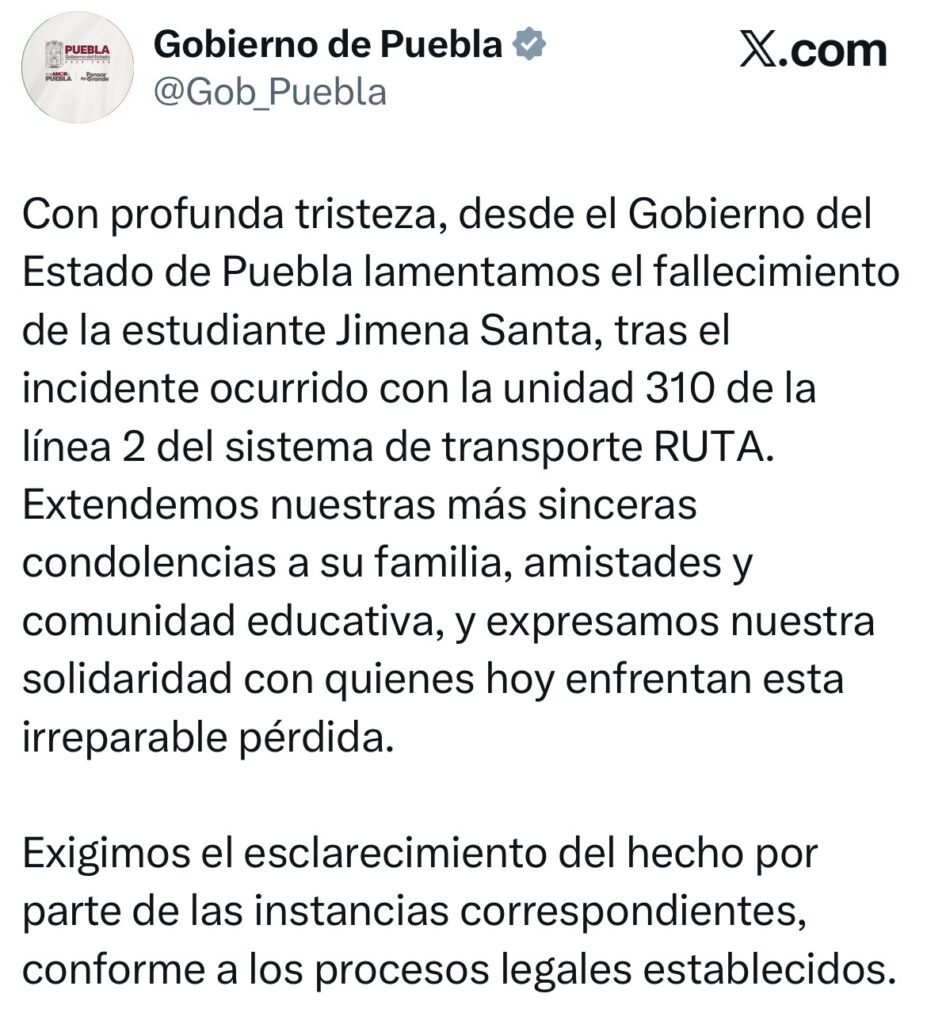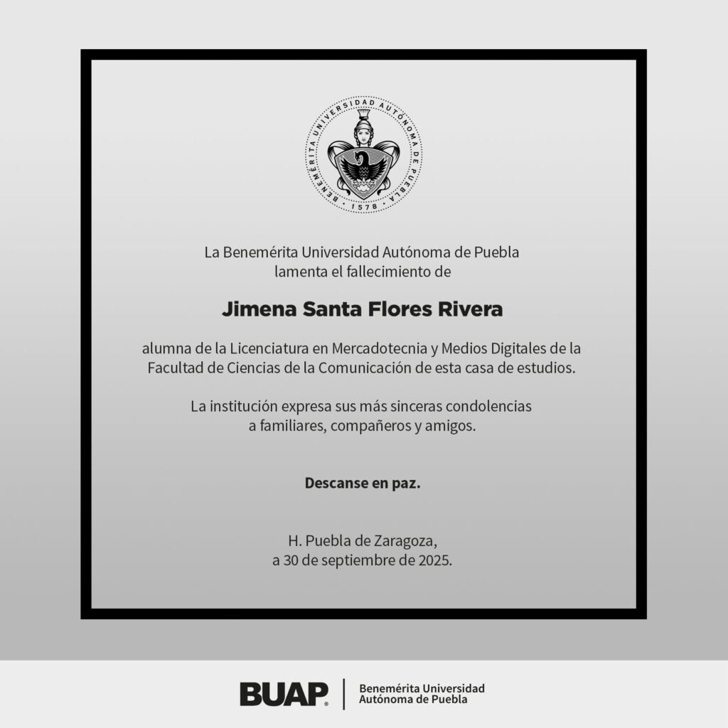 Ante esto, la BUAP lamentó el fallecimiento de su alumna mediante una esquela difundida en redes sociales, mientras que el Gobierno del Estado expresó sus condolencias y exigió el esclarecimiento de los hechos conforme a los procesos legales establecidos.