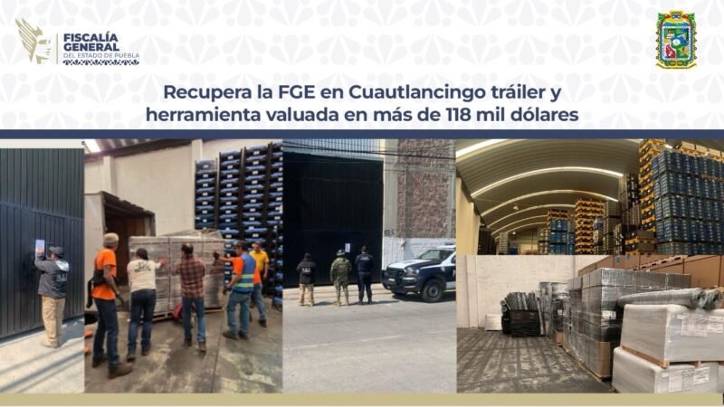 La Fiscalía General del Estado de Puebla (FGE), con apoyo de la Secretaría de Marina (Semar), la Secretaría de Seguridad Pública Estatal y la Policía Municipal de Cuautlancingo, logró la recuperación de un tráiler robado, junto con un cargamento de herramienta valuado en más de 118 mil dólares.