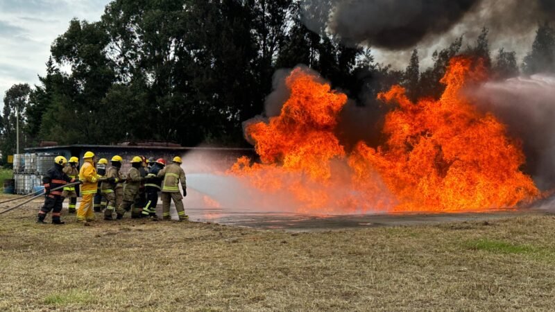 El cierre del taller se realizó con una práctica de campo en una instalación real, donde los participantes pusieron a prueba los conocimientos adquiridos en un escenario controlado, trabajando en equipo para responder a una situación de emergencia simulada.