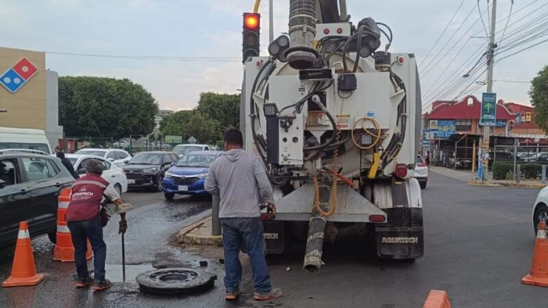 El Sistema Operador de los Servicios de Agua Potable y Alcantarillado de San Pedro Cholula (SOSAPACH) informó que personal operativo llevó a cabo trabajos de desazolve en la red de alcantarillado sanitario en la intersección de Prolongación 6 Norte y Boulevard Forjadores de Puebla, tras registrarse una obstrucción que afectaba el flujo de aguas residuales.